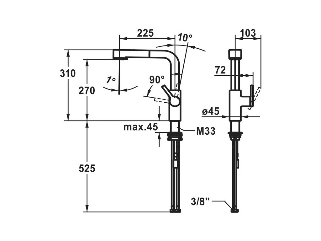 - Délka výtoku: 225 mm