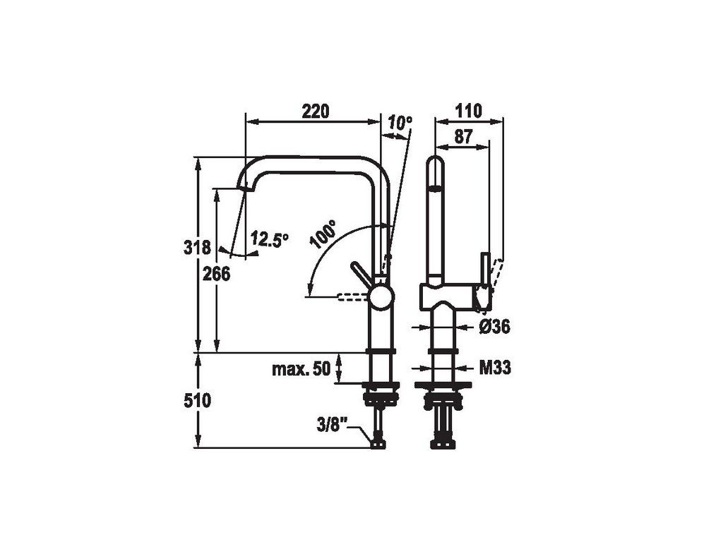 - Délka výtoku: 220 mm