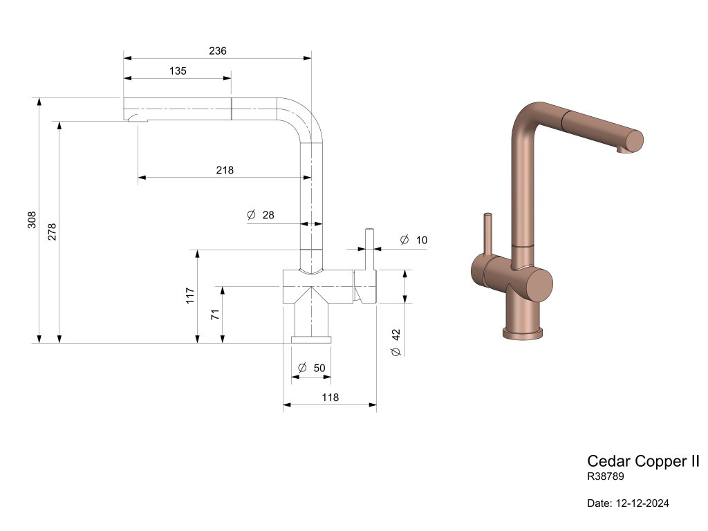 Dřezová baterie Reginox Cedar, R38789, Copper / měď