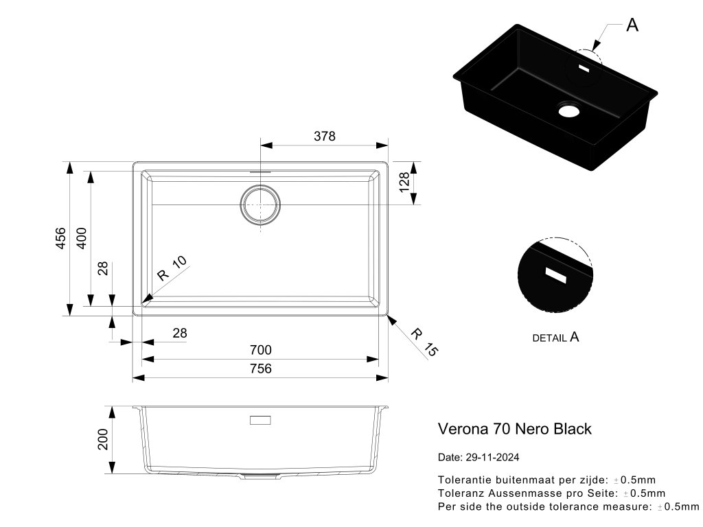 Granitový dřez Reginox Verona 70, R40300, Nero Black