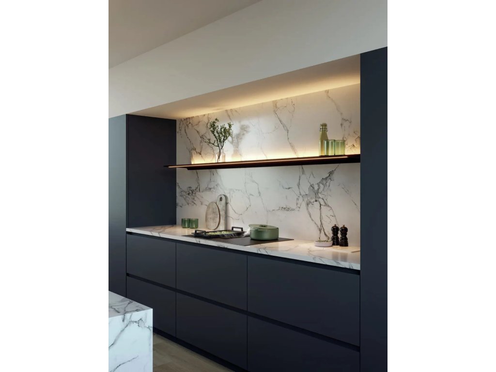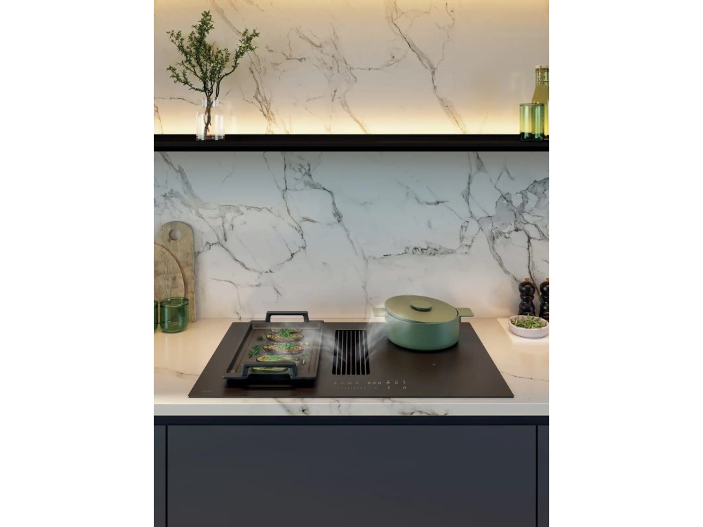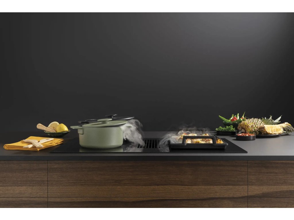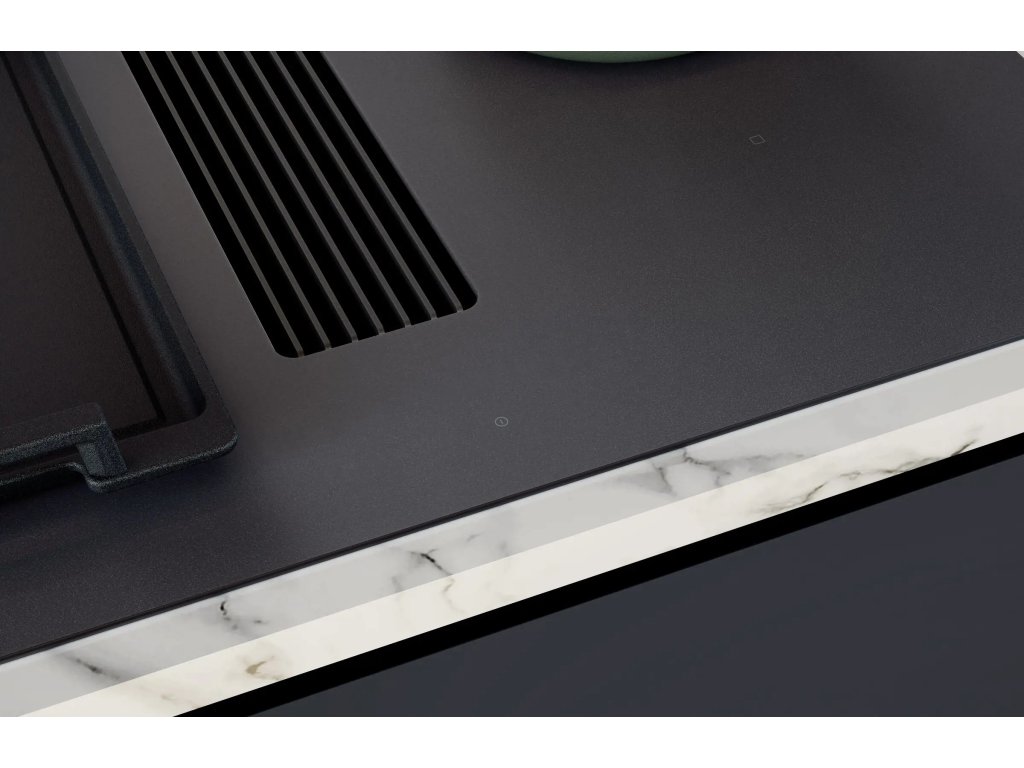 Motor odsavače je integrovaný pod indukční deskou, takže je možno využít celou hloubku skříňky. Pod varnou deskou je nutno počítat s prostorem o výšce 22,5 cm pro odsavač par.