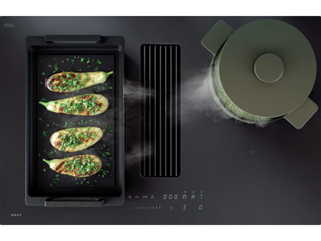 Model Novy Easy představuje optimální řešení odsavače par, který odsává výpary tam, kde vznikají, tedy přímo na varné desce. Odsávání probíhá přes sací mřížku, která je umístěna uprostřed varné desky, takže je blízko všech varných zón. Díky výkonnému odhlučněnému motoru je odsávání vysoce účinné, ale přitom velmi tiché.