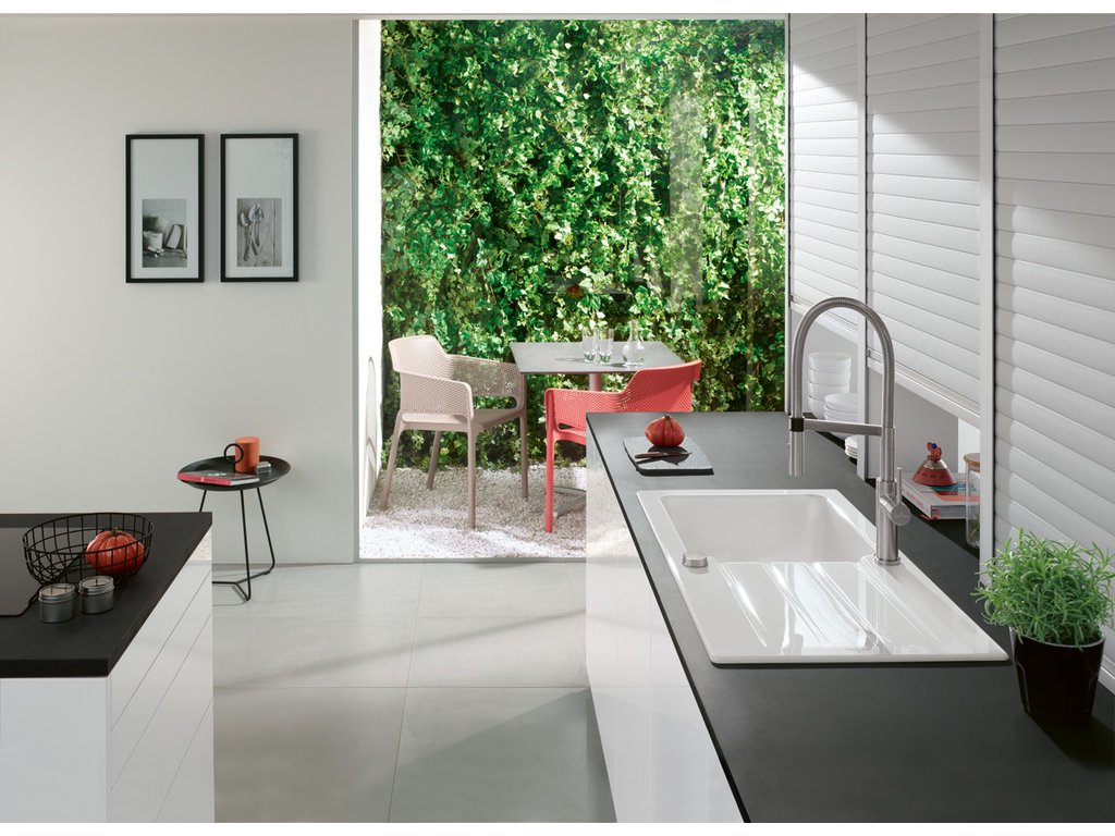 Keramický dřez Villeroy & Boch Architectura je vyroben z materiálu CeramicPlus, který zajišťuje vyjímečnou tvrdost, odolnost proti poškrábání nebo jinému poškození a také odolnost proti vysokým teplotám. Povrch je odolný proti cizím látkám a nečistotám, takže se výborně čistí a potraviny na něm nezanechávají žádné stopy. Materiál CeramicPlus je vyroben ze 100% přírodních materiálů, je barevně stálý a nepřijímá chutě ani zápachy, takže ja absolutně nezávadný pro potraviny.
