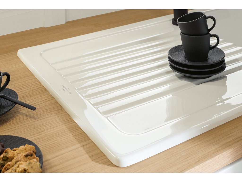 Keramický dřez Villeroy & Boch Linara je vyroben z materiáluTitanCeram, který zajišťuje vyjímečnou tvrdost, odolnost proti poškrábání nebo jinému poškození a také odolnost proti vysokým teplotám. Povrch je odolný proti cizím látkám a nečistotám, takže se výborně čistí a potraviny na něm nezanechávají žádné stopy. Materiál CeramicPlus je vyroben ze 100% přírodních materiálů, je barevně stálý a nepřijímá chutě ani zápachy, takže ja absolutně nezávadný pro potraviny.