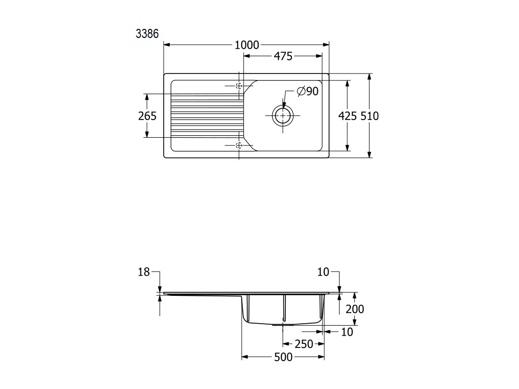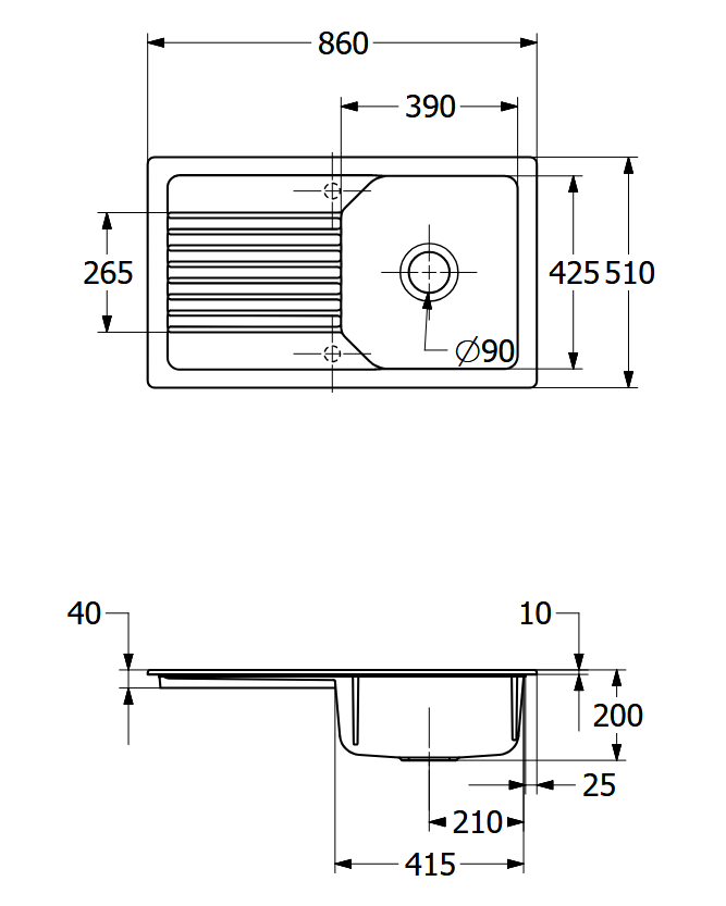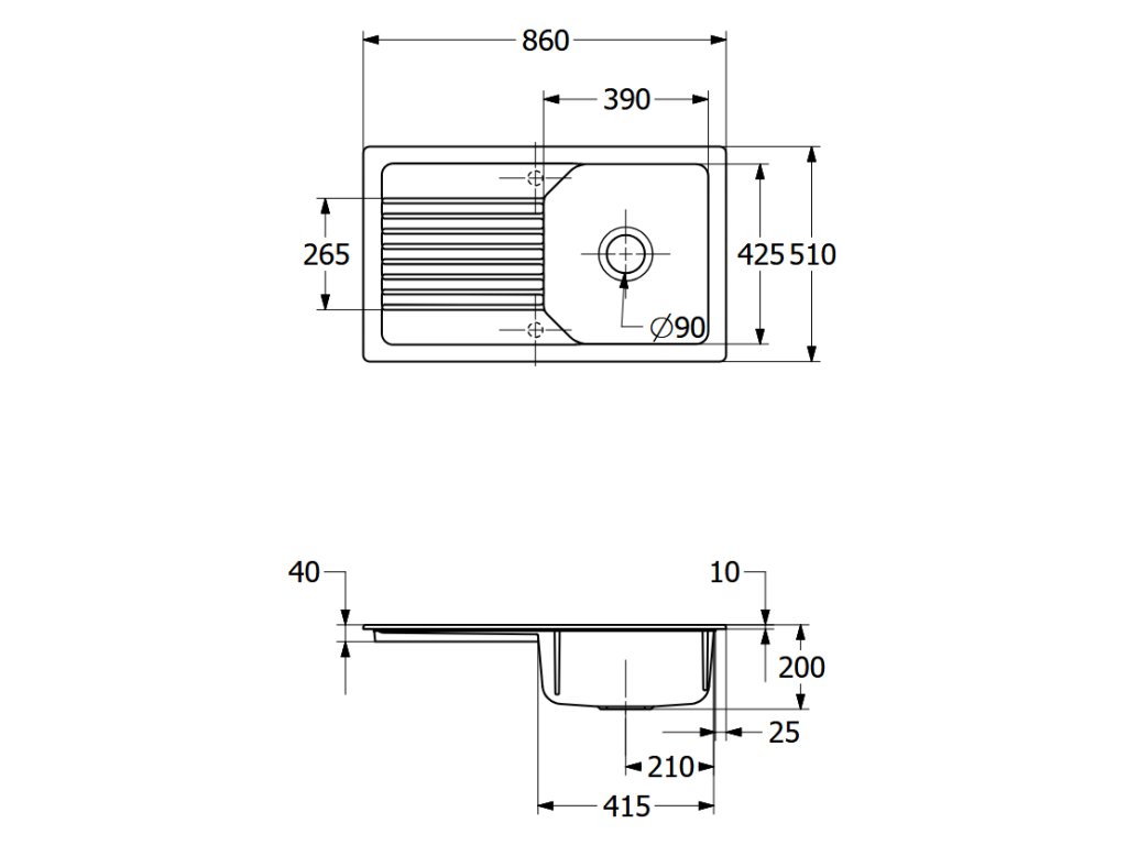- Rozměry dřezu (ŠxHxV): 860 x 510 x 200 mm