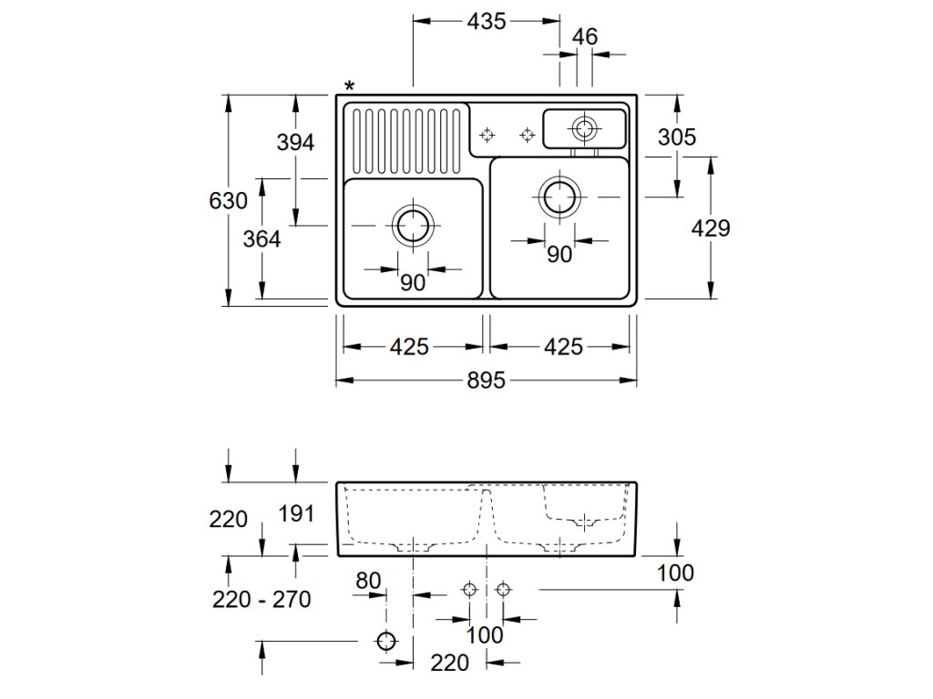 - Rozměry dřezu (ŠxHxV): 895 x 630 x 220 mm