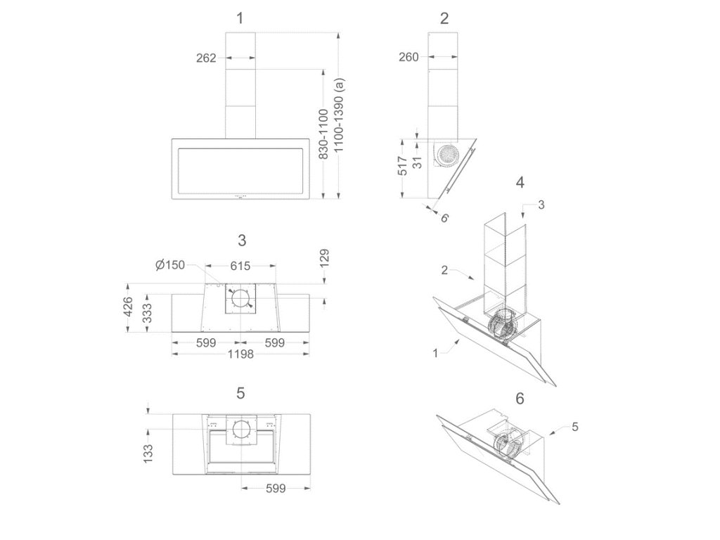 - Rozměry odsavače (ŠxHxV): 1198 x 426 x 830 - 1100 mm
