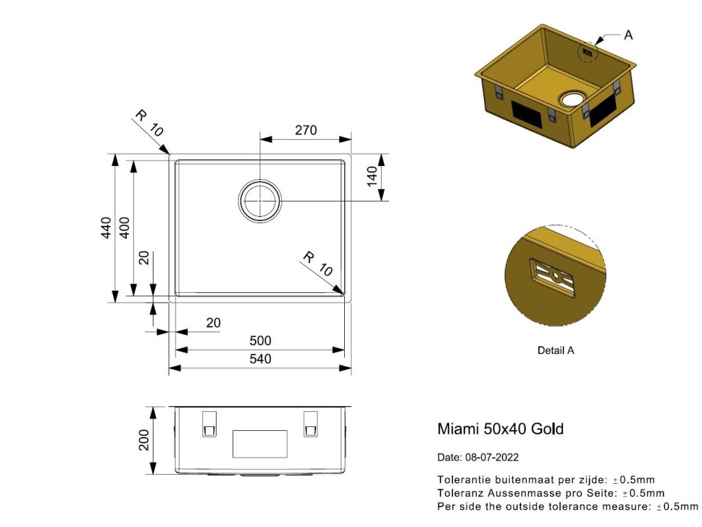 Nerezový dřez Reginox Miami 50x40, R30745, Gold / zlatý - 2. jakost, poškozený obal