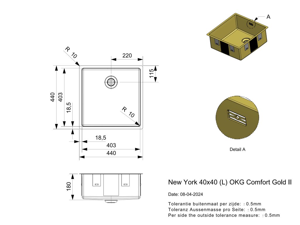 Nerezový dřez Reginox New York 40x40, R38734, Gold / zlatý