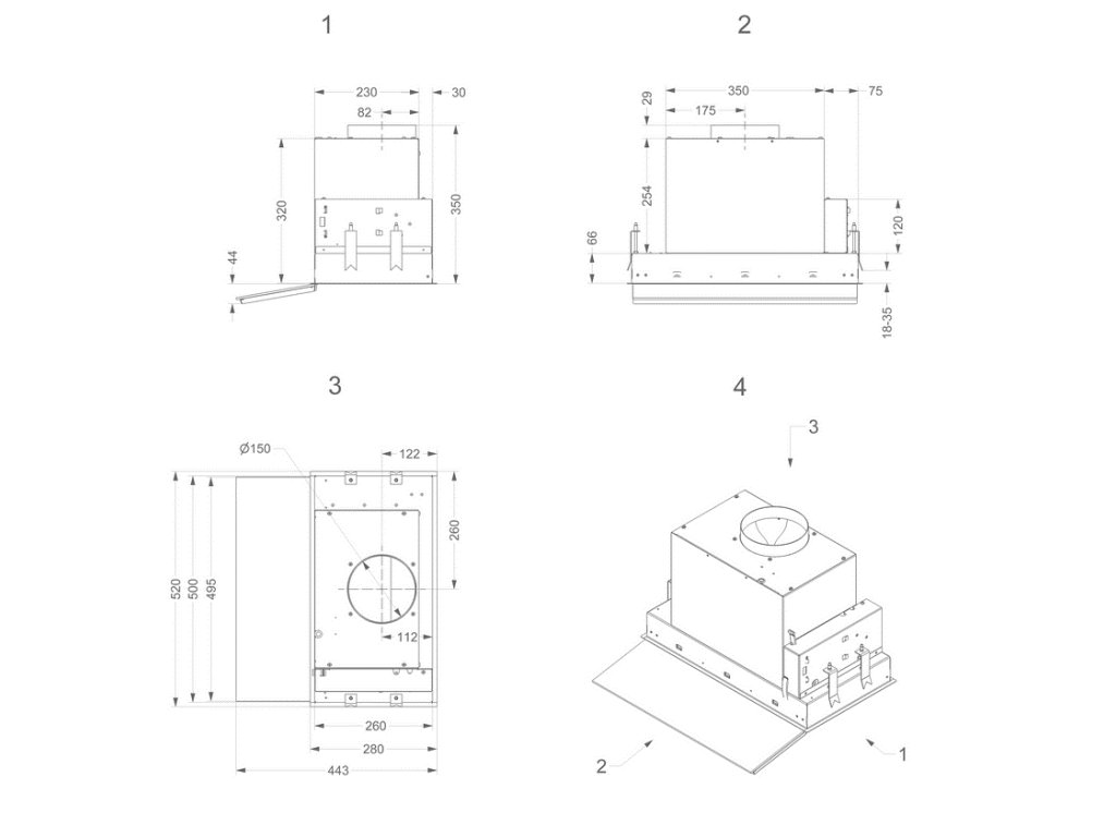 - Doporučená montážní výška nad indukční varnou deskou: 500 - 750 mm