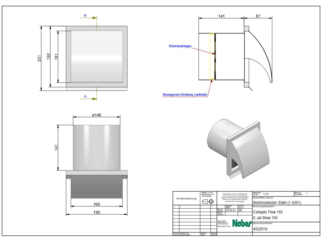 Venkovní mřížka Naber E-Jal Blow 150, 4022019, nerez